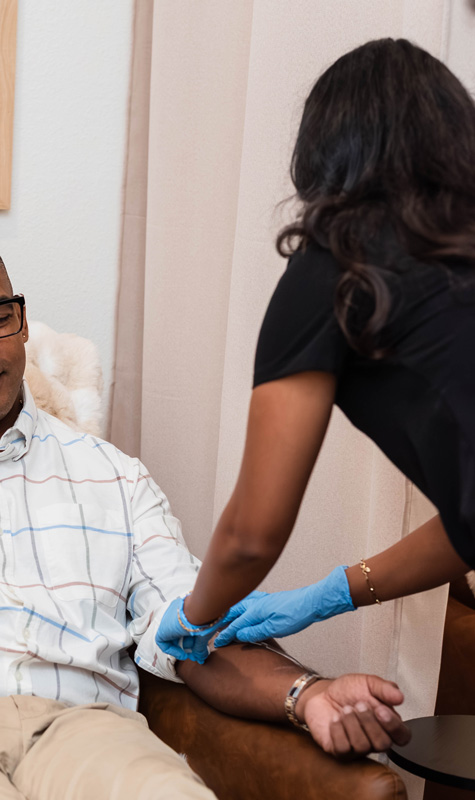 • One of our providers will sit down with you to discuss your energy, recovery, or anti-aging goals and confirm that NAD⁺ IV Therapy is the right fit. We’ll explain how the treatment works, outline expected benefits, and answer every question so you feel fully informed.