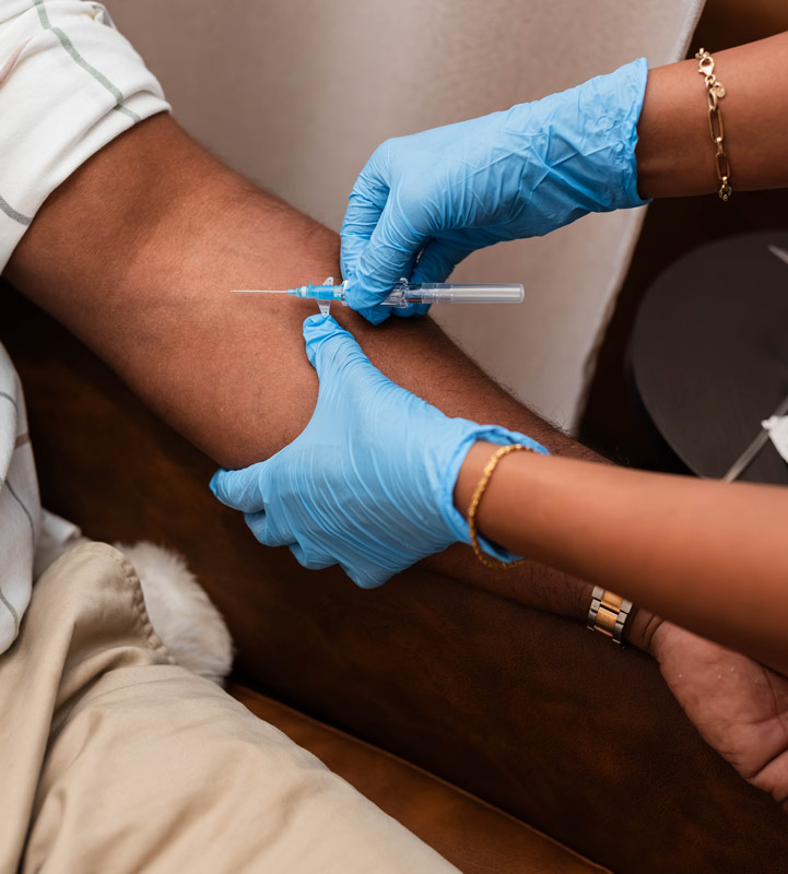 • We’ll clean the inside of your arm and place a small IV catheter. The line will be taped in place and your NAD⁺ treatment will begin.